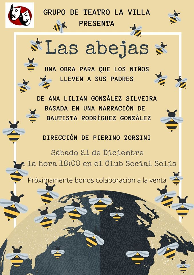 El Grupo de Teatro «La Villa» realizará la presentación de «Las Abejas», una obra para que los niños lleven a sus padres, de Ana Lilián González Silveira, basada en una narración de Bautista Rodríguez González, bajo la dirección de Pierino Zorzini.